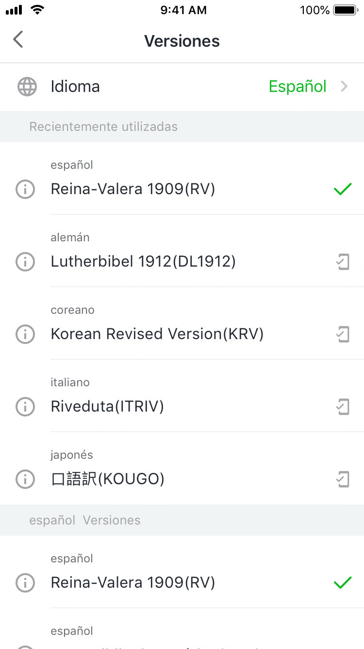 Acceso sin conexión a la Biblia (versiones limitadas)