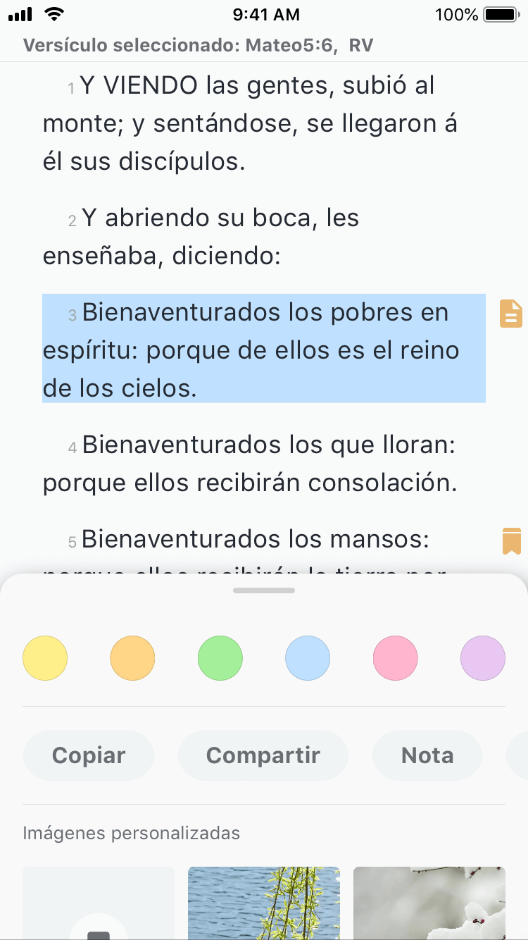 Selecciona los versículos que quieras y compártelos fácilmente con familiares y amigos.