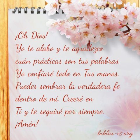 ¡Oh Dios! Yo te alabo y te agradezco cuán prácticas son tus palabras. Yo confiaré todo en Tus manos. Puedes sembrar la verdadera fe dentro de mí. Creeré en Ti y te seguiré por siempre. ¡Amén!...Oración - Que Dios me dé confianza y fortaleza